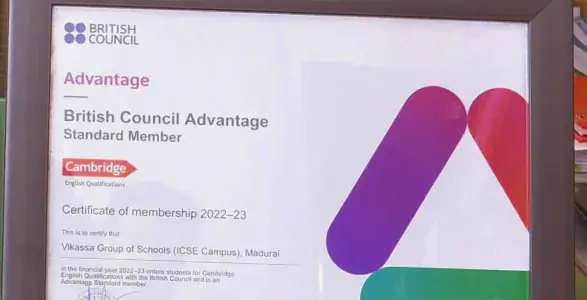 Notable as the best International School in Madurai, Vikaasa has received prestigious awards from organisations such as Cambridge Assessment English, the British Council, Asia One, Edu Class, and VConnect. It has been recognised with honorary titles, including "Excellence in Best Teaching Practice," "Advantage Premium Member - Cambridge Qualifications," "Standard Member of Cambridge English Qualification," "India's Greatest Brand in Education 2021," and "India's Greatest Leader 2021."